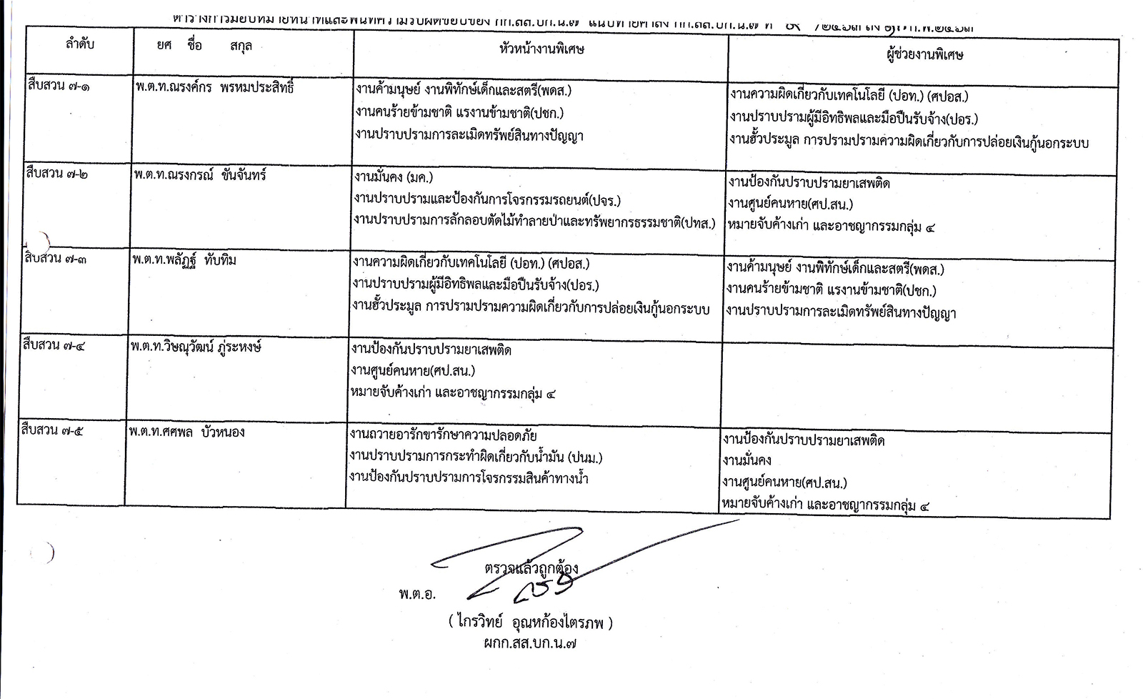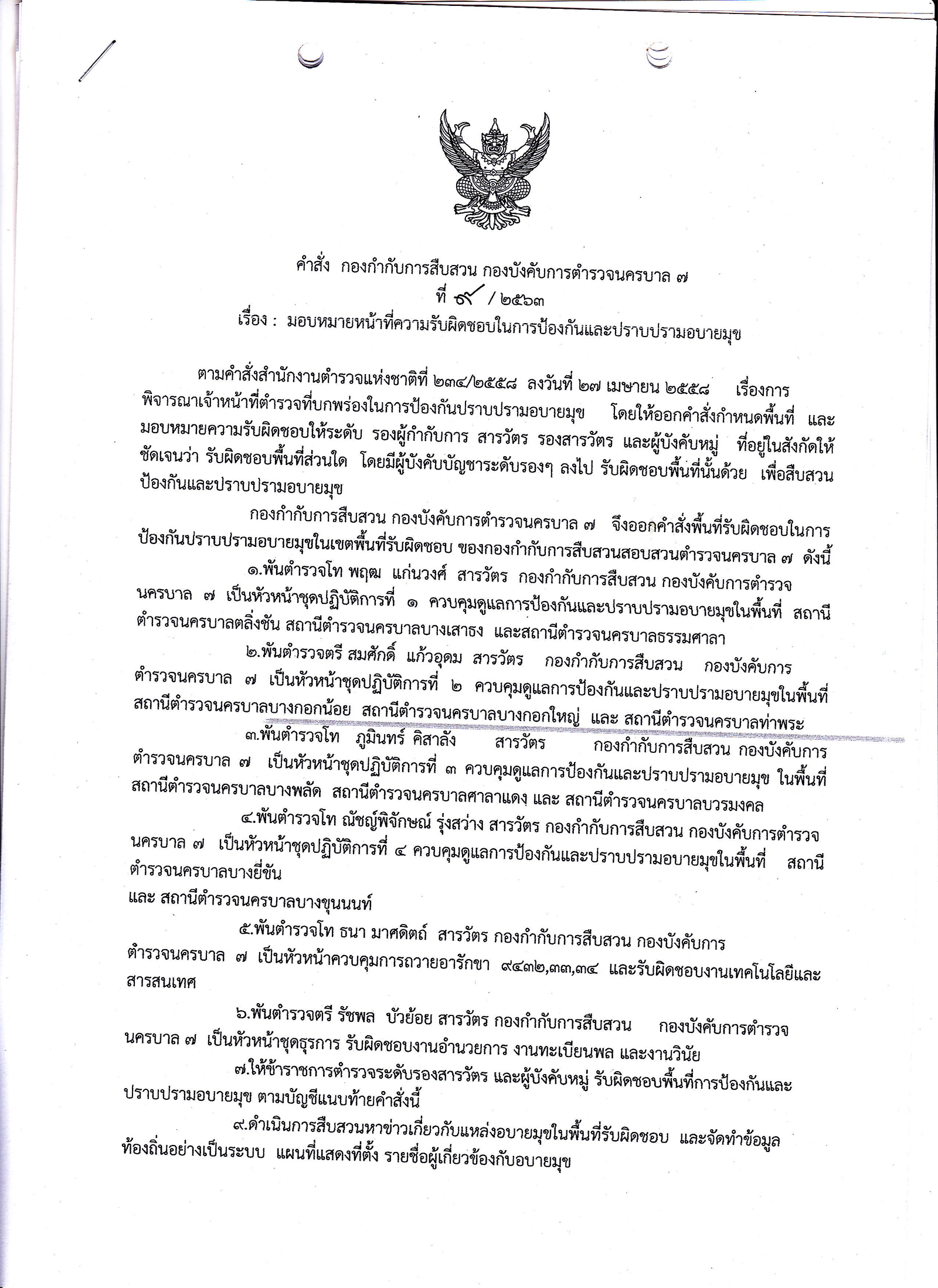 มอบหมายหน้าที่ความรับผิดชอบในการป้องกันและปราบปรามอบายมุข
